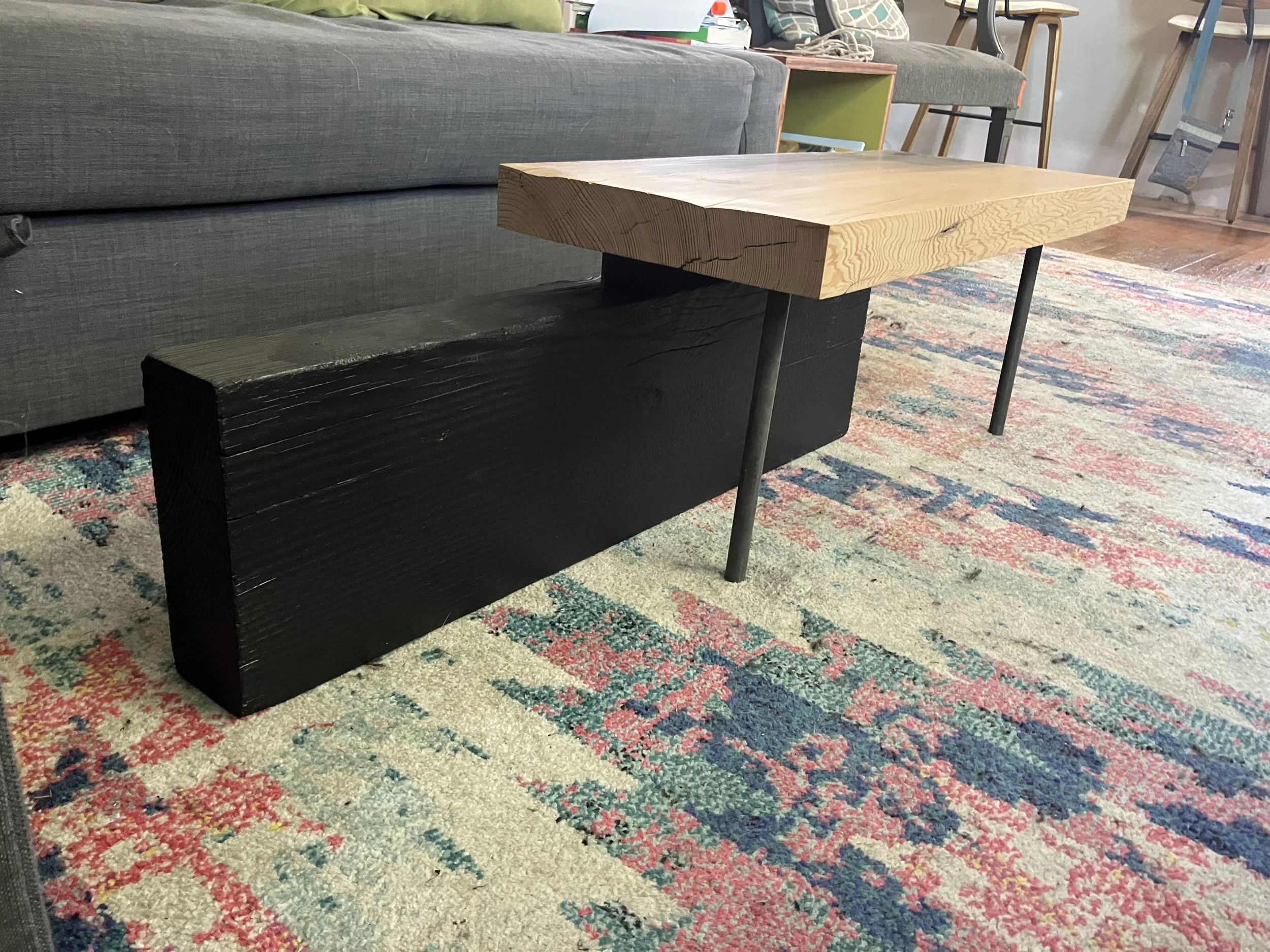 Elevate your home decor with this stunning Rustic Reclaimed Wood Bench, blending timeless charm with modern aesthetics. The timbers used to make this coffee table came from the renovation of the Oaks Bottom Roller Rink at Oaks Bottom Amusement Park in Portland, Oregon. They have a ton of character including notches and bolt holes. They have been sanded to a smooth finish to reduce the potential for splinters and has been sealed with a matte clear coat.