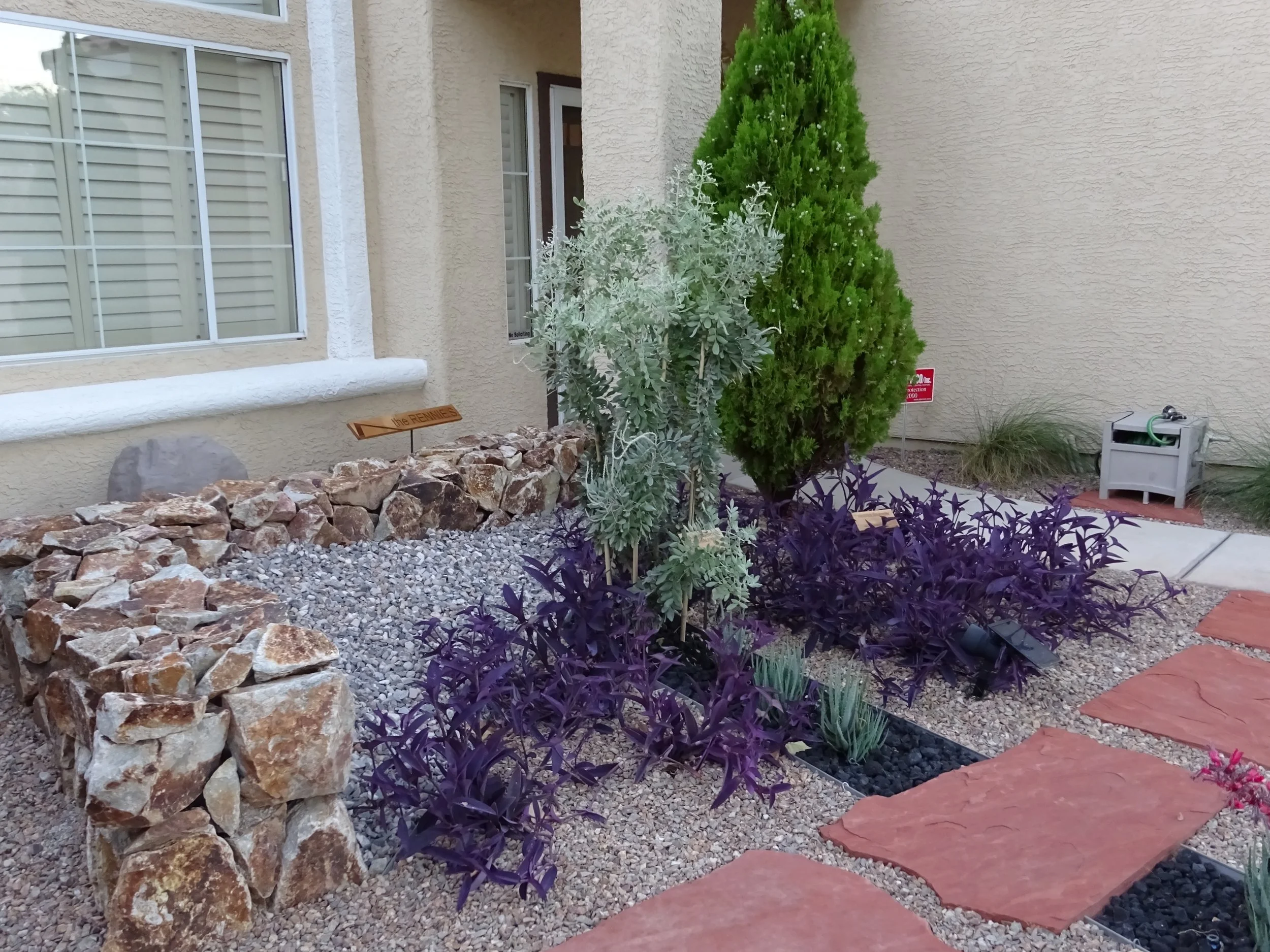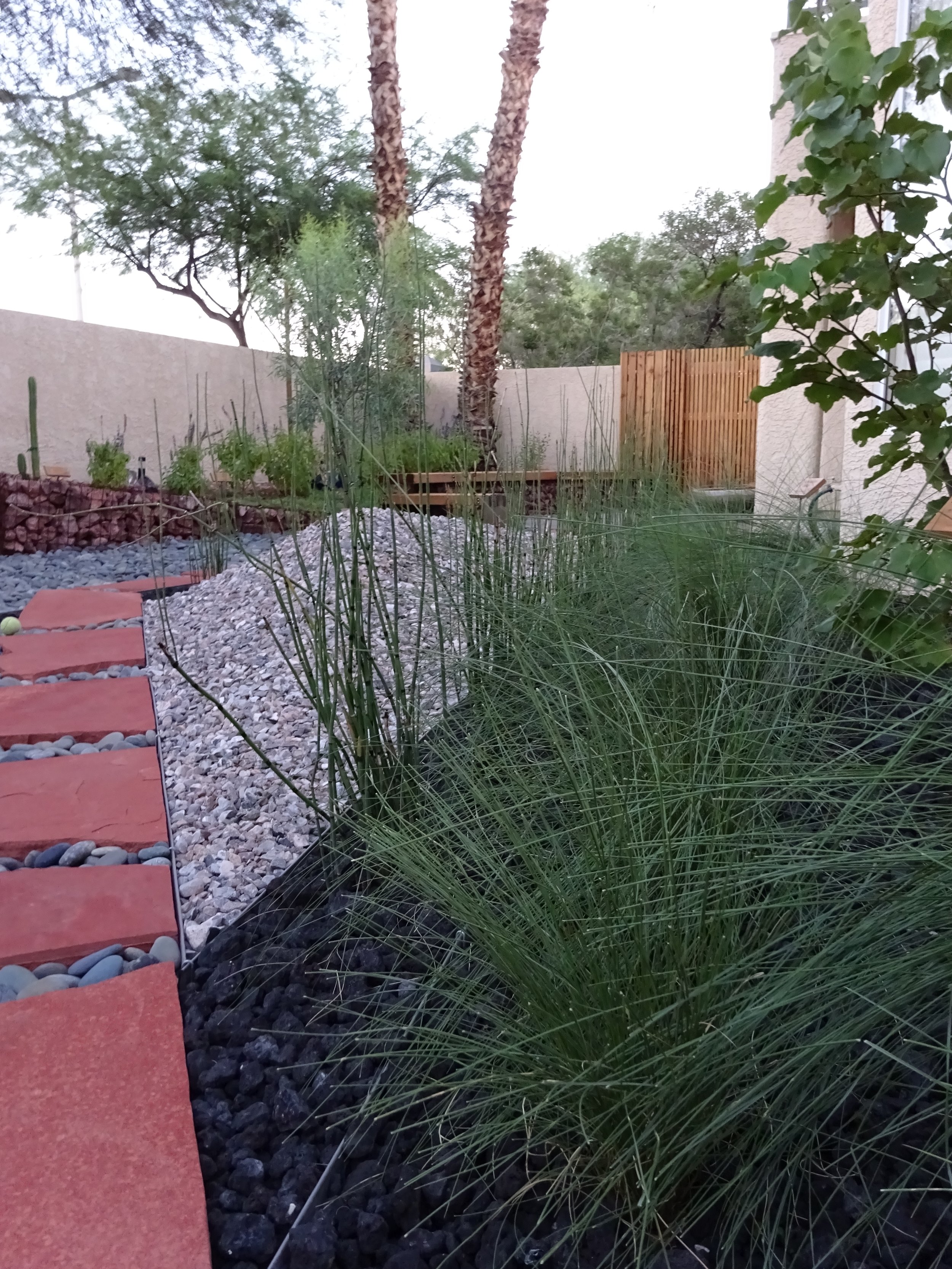 This project took place in Las Vegas with the primary task being to replace a water-loving lawn with a native xeriscape garden. The project began with a trip to the local botanical garden to educate the client on what native vegetation looks like and to gauge the client’s likes and dislikes. It turned out the client loved the native vegetation and wanted to learn all the plants that we put in the garden so I made wooden plant labels on a laser cutter that had the name of each plant in the garden.